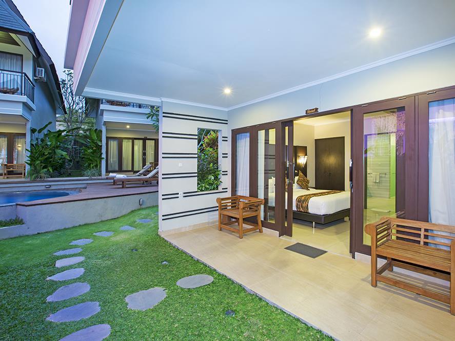 Escape to your private pool, an intimate retreat exclusively for your pleasure. Inside, a well-appointed kitchenette with a refrigerator offers convenience, allowing for personalized culinary experiences.