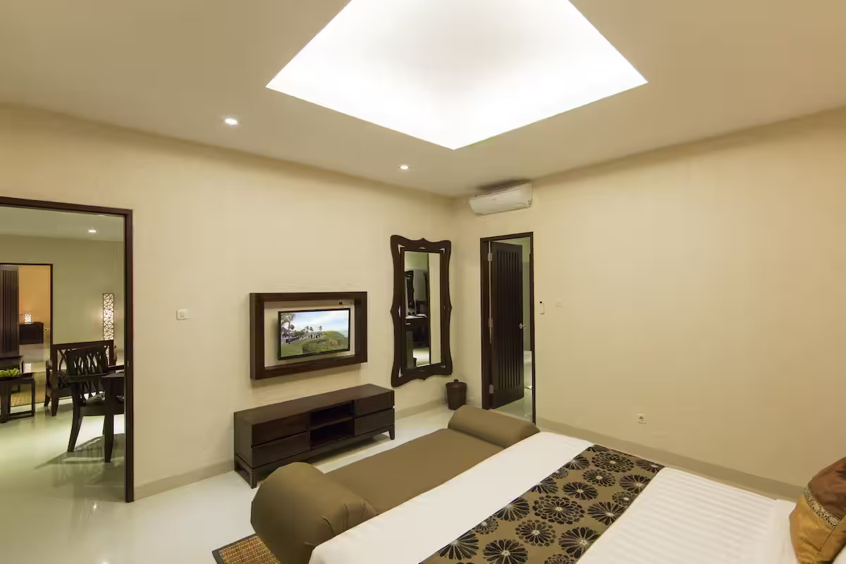 Indulge in the serene ambiance of your private balcony or patio, surrounded by a soundproofed environment for undisturbed tranquility. The villa boasts a separate dining area and sitting area, carefully crafted to harmonize comfort and elegance. Air conditioning throughout ensures an oasis of calm.